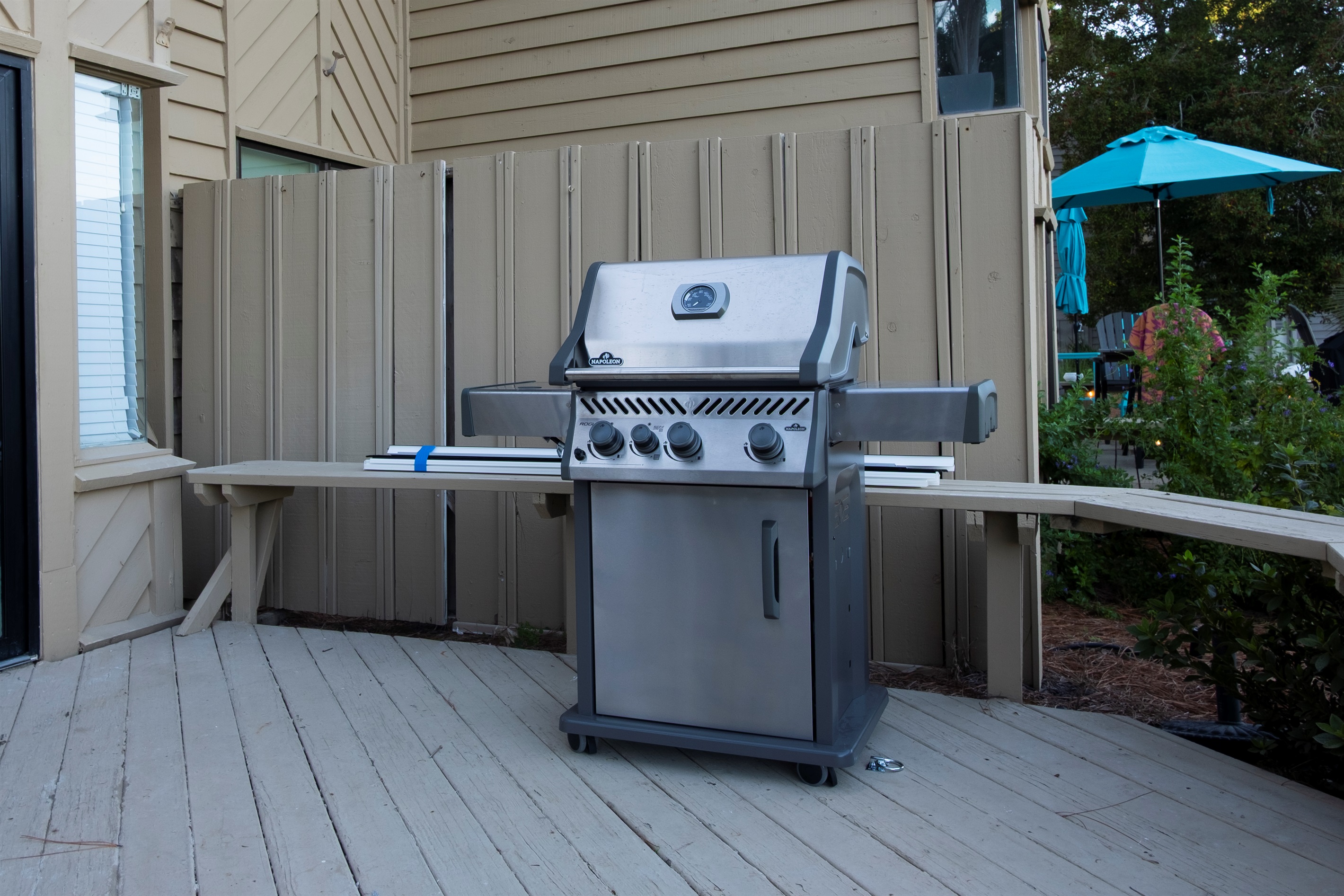 - Outdoor patio with fire table